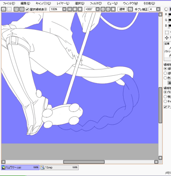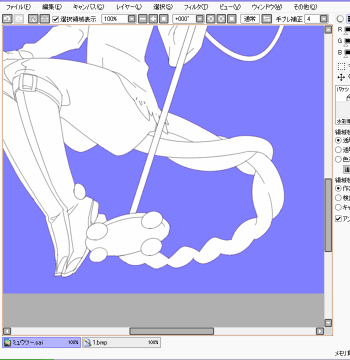 着色に入ります。 [自動選択]で人物の周りの空白を選択、これを後に[選択領域の反転]で反転させ 人物全体を選択→塗りつぶします。 ![]() |