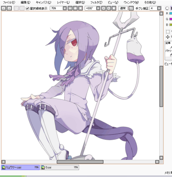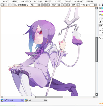 新たにレイヤーを敷いて目や髪などに色を入れてきます。 個人的に楽しい作業。 |