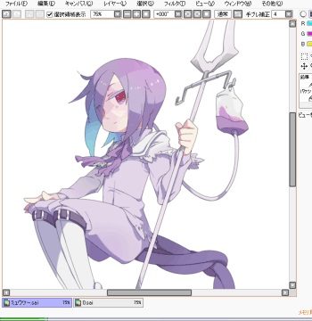 塗りつぶし後。 擬人化で悩むのが配色ですが、この段階で決めたり変更したりもしてます。割と適当。 |