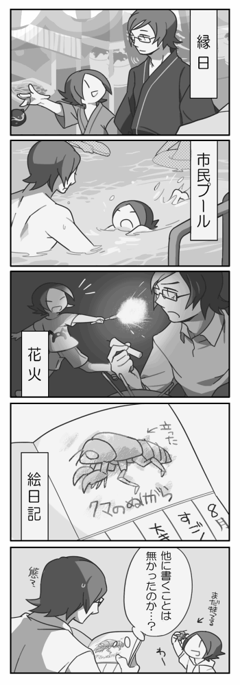 弟の絵日記(宿題)を見させてもらったら安定の不可解内容でした。 別に遊んでもらった事を忘れてるわけじゃないんだけど、描きやすかったか思うままに描いたんだと思います。←あり とか描いちゃう子だし・・・・
